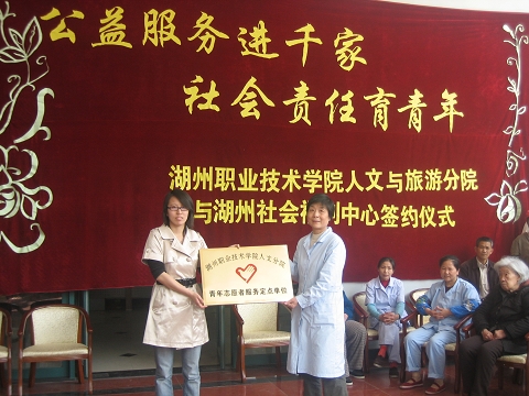 分院的一位志愿者在与一位结对老人了解中得知:湖州社会福利中心是刚刚新建成的养老中心,那里居住的主要人群是老年人,他们平日生活寂寞、空虚,也有些身体情况不佳的。他们的生活急需我们的帮助。分院团委在走访中发现,湖州良友学校是湖城大部分外来务工子女就读的学校,目前有学生1000名,存在着办学条件、师资条件普遍较差的现状。这也为我们分院志愿者提供公益服务提供了一个机会。经过前期近1个月左右的联络、沟通、商谈等,最终与湖州社会福利中心、湖州良友学校两处建立了长期公益服务协议。