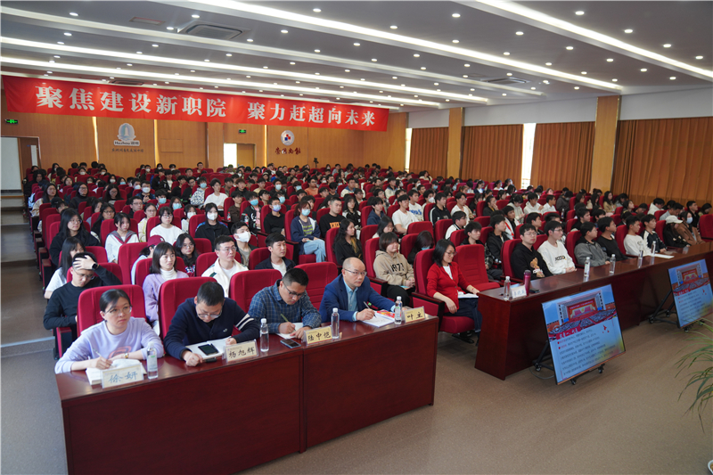 3月10日下午,学校在1号报告厅召开镜湖大讲堂暨“红绿蓝”学生成长课堂党的“二十大”精神专题学习会。党的二十大代表、湖州市检察院第六检察部章春燕主任作了题为《奋进新征程 建功新时代》的辅导报告。校党委副书记叶主、各二级学院副书记、辅导员代表、学生代表等270余人参加报告会。党委委员宣传部部长李晓英主持。
