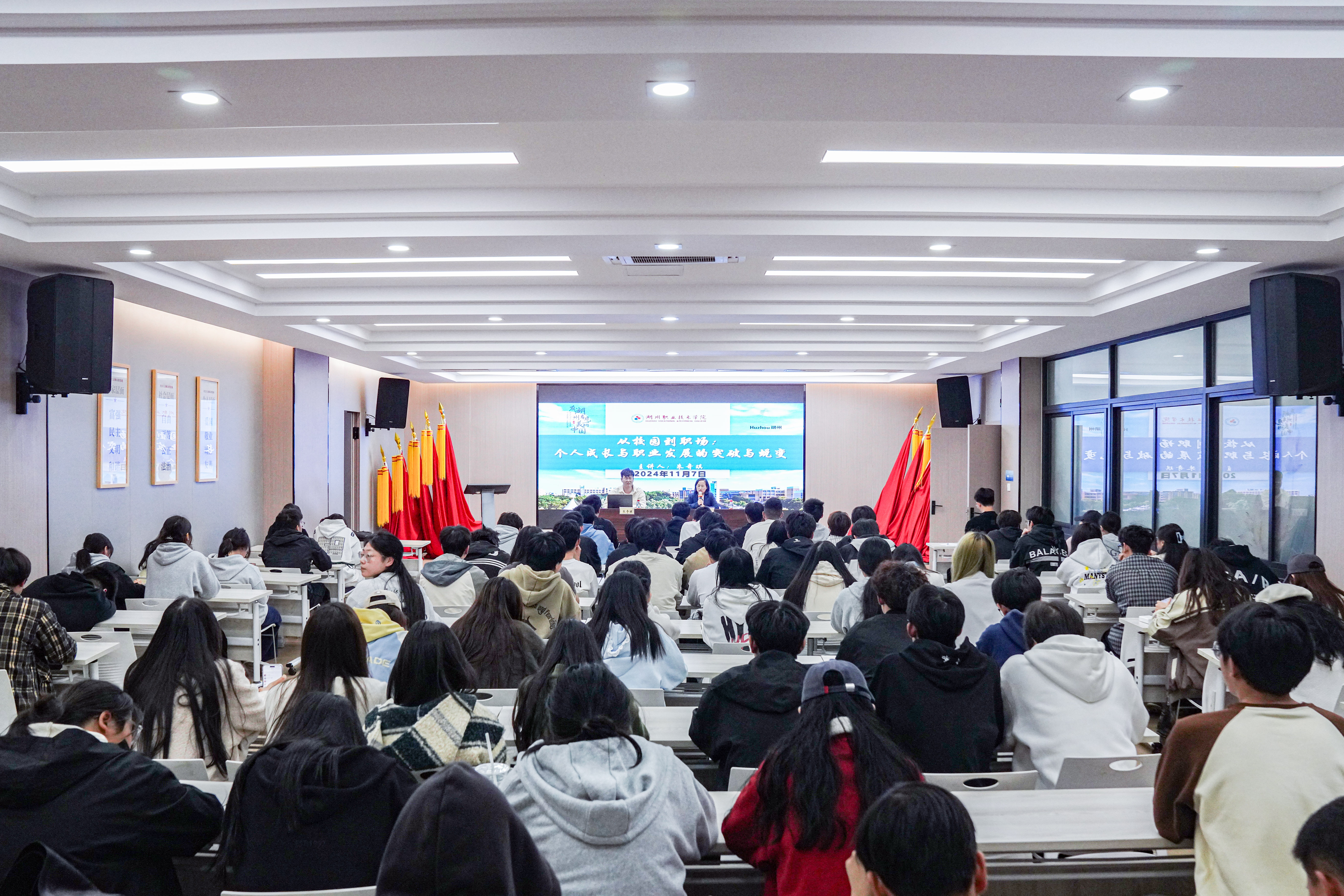 青春赋能,引领启航。在学校高等职业教育25周年暨办学45周年校庆即将来临之际,11月7日,宣传部联合新能源工程与汽车学院在党群服务中心举办了《镜湖大讲堂:从校园到职场——个人成长与职业发展的突破与蜕变》专题讲座,特邀优秀校友、浙江青年工匠、湖州市技术能手朱奇琪担任主讲。来自学校的近百名学生参加了讲座。