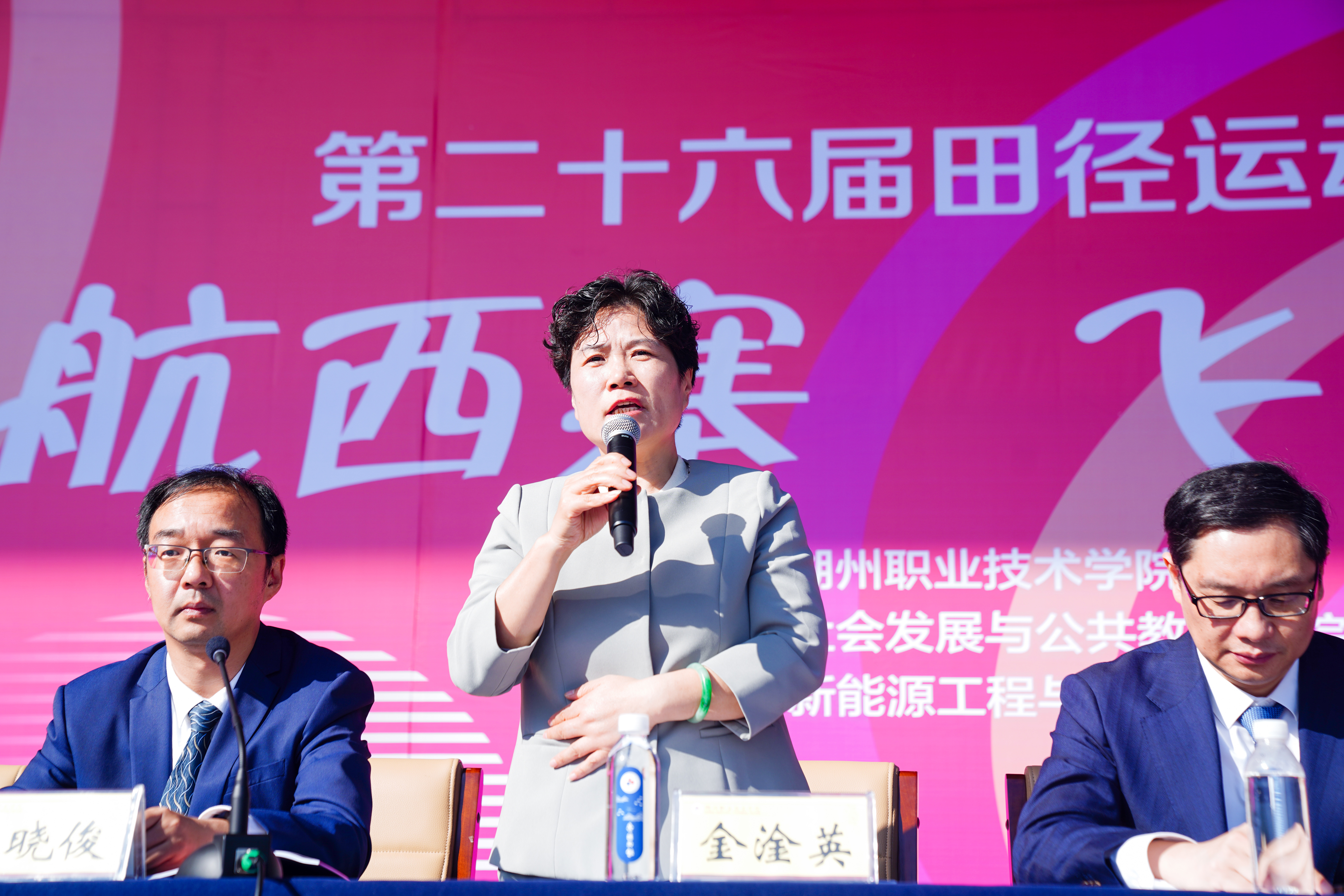 副校长何彦虎致开幕辞。他表示,体育强则中国强,国运兴则体育兴。近年来,学校体育工作始终坚持“以体育人,健康第一”的指导思想,以服务学生全面发展、增强综合素质为目标,将体育与高素质技术技能人才培养相结合,稳步推进体育教学改革,取得良好育人成效。希望全校师生以此次运动会和体育文化节为契机,做健康中国的“践行者”,弘扬“更高、更快、更强、更团结”的体育精神,展现精湛的运动技能和良好的道德风貌,以一届精彩、圆满的体育盛会,进一步激发全体师生改革奋进的力量,为学校高质量跨越式发展作出新的更大贡献!